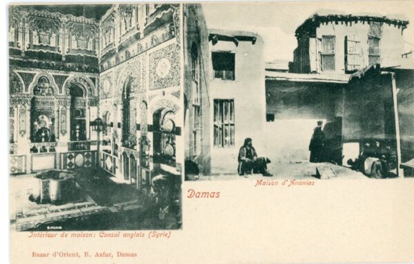 Syria: Unused postcard titled’ Maison d’Ananias & Interior de maison: Consul anglais’. ed. B. Asfar