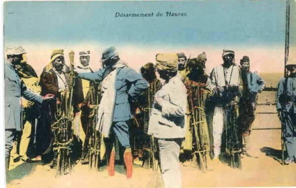 Syria: Unused postcard titled ‘Desarmement du Hauran’.