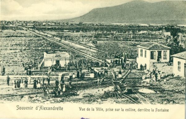 Turkey – Hatay: Unused postcard of Alexandrette titled ‘Vue de la Ville, prise sur la colline, derriere la Fontaine’. Reverse message in French but never posted. Scarce Armenian editorH. Abadjian.