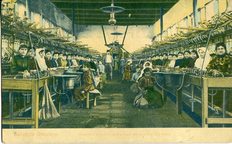 Unused postcard of the silk thread factory in Bursa