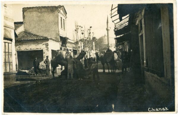 Türkiye: Unused photo postcard of Camels in the city titled ‘Chanak’. ed. FAC