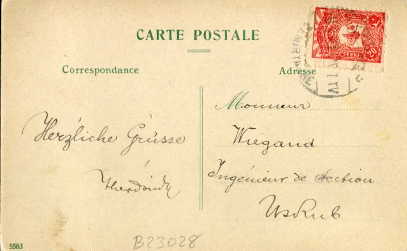 Ottoman Turkey: 1907 postcard titled ‘Gare d’Andrinople’ to Skopje, Macedonia franked with 20pa of 1905 issue and tied by TIMURTAS – DEMIRTACHE (today Karaagaç, A&P type 6) datestamp. ed. A. Ilieff