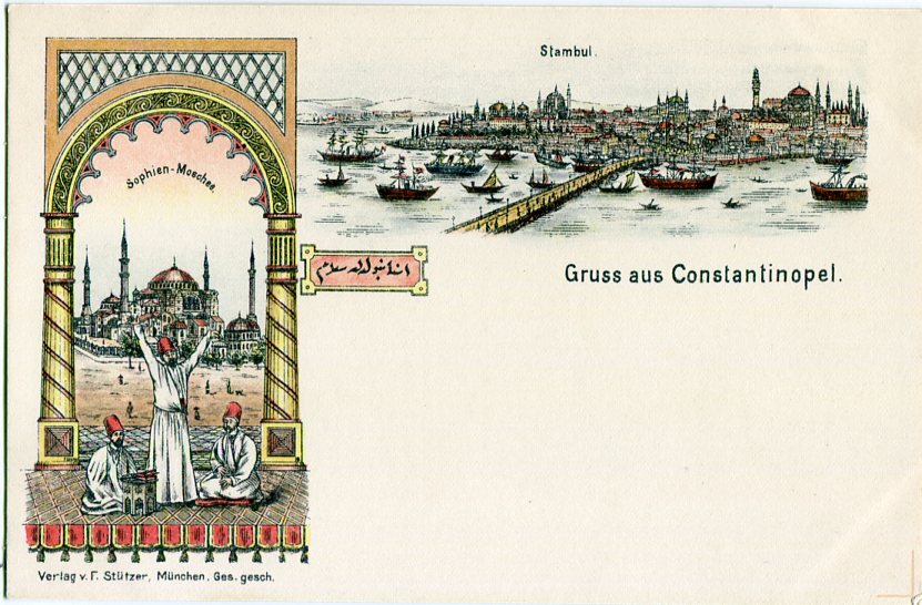 Turkey: Unused postcard titled ‘Gruss aus Constantinopel – Sophien-Moschee, Stambul’. Superb condition. ed. F. Stützer