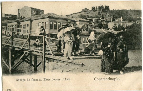 Türkiye: 1904 postcard titled ‘Groupe de femmes, Eaux donces d’Asie’ to London franked with 1d and tied by BPO Constantinople datestamp.