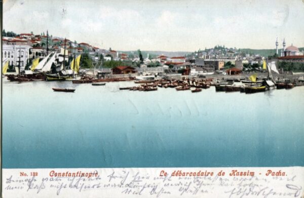 Turkey: circa 1908 postcard to Germany titled ‘Constantinople. Le debarcadaire de Kassim – Pacha’ franked with 20pa of 1908 issue and tied by Pera datestamp.