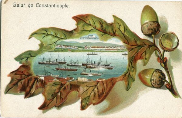 Türkiye: Unused embossed postcard titled ‘Port de Constantinople’. Scarce early litho