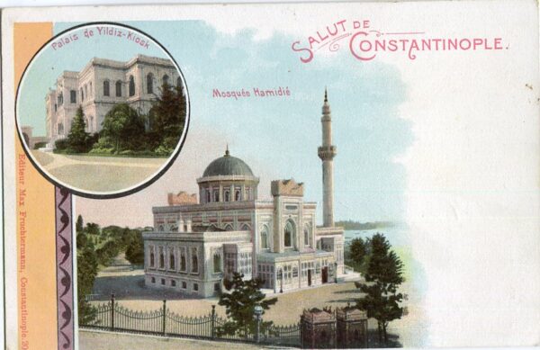 Türkiye: Unused postcard titled ‘Constantinople. Palais de Yildiz-Kiosk – Mosquee Hamidie’. ed. Fruchtermann #206