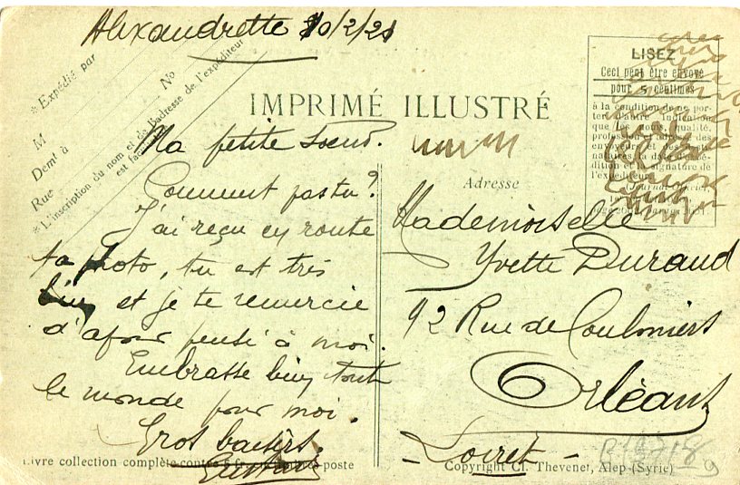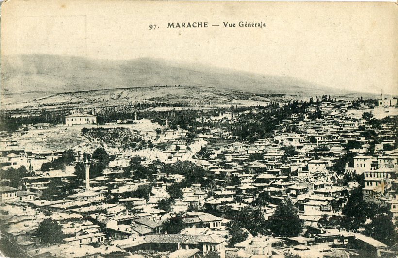 Turkey: Unused postcard titled ‘MARACHE – Vue Generale’ with a 1921 Alexandrette dated message in French on reverse but not posted. ed. Thevenet