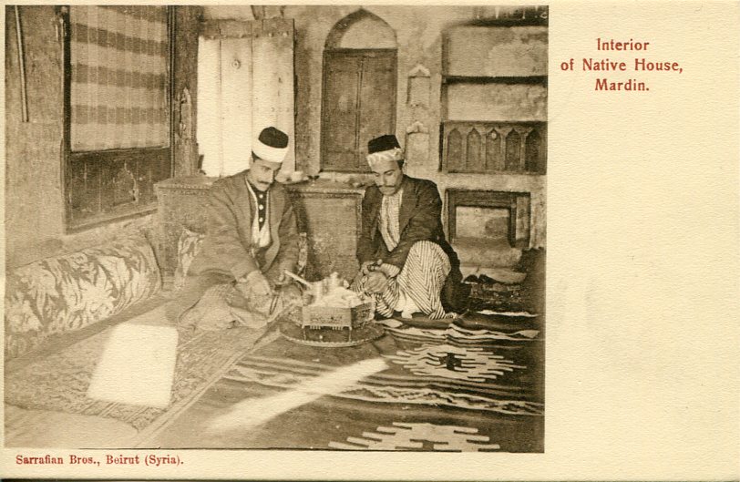 Turkey: Unused postcard titled ‘Interior of Native House, Mardin’. ed Sarrafian Bros, Beirut