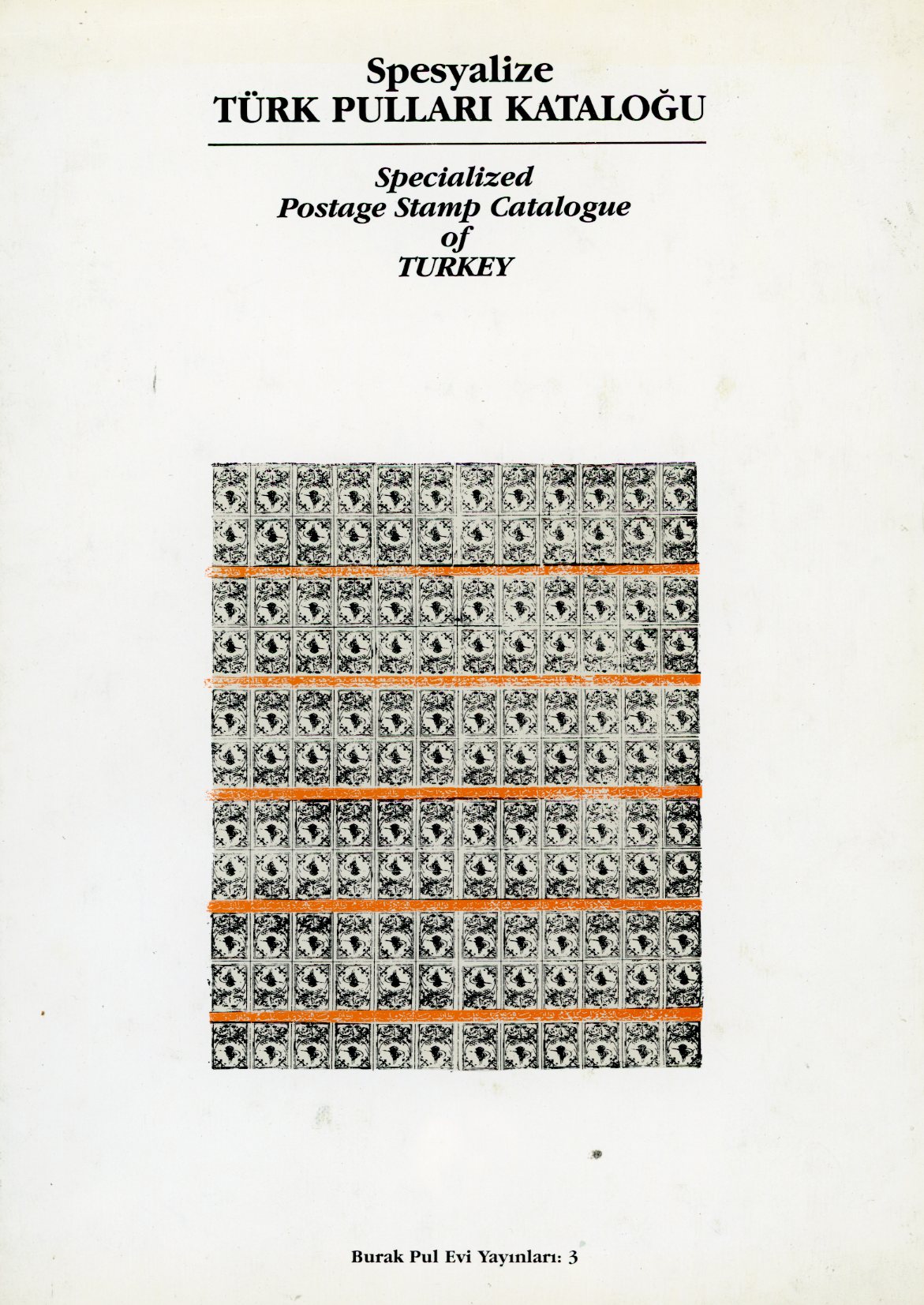 Specialized Postage Stamp Catalogue of Turkey (1840 – 1941) by Burak Pul Evi, 1991, hardbound with dustjacket (some tear on top), colour, Turkish & English, Pulhan and Scott cross reference numbers, 224 pages, unmarked clean copy, almost new.
