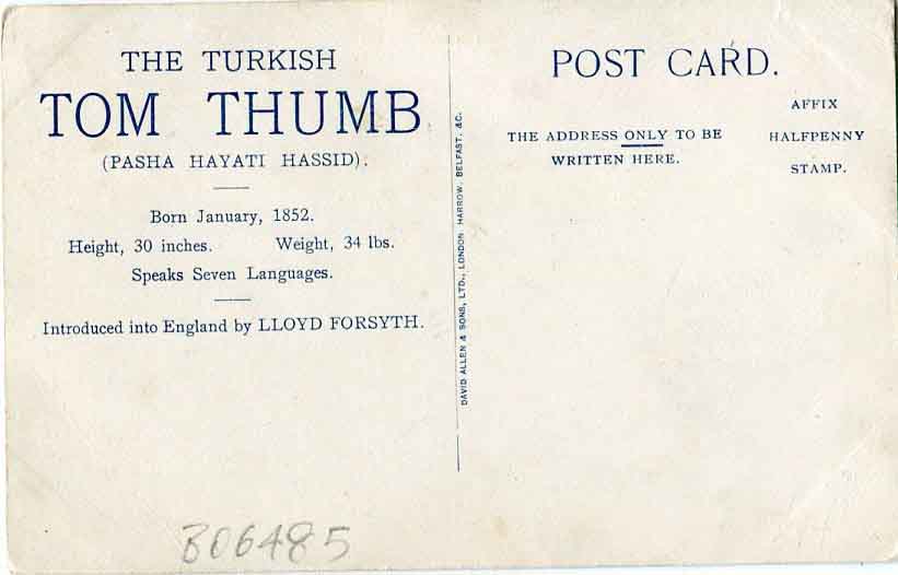 Turkey: Unused postcard titled ‘The Turkish Tom Thumb’. Unusual