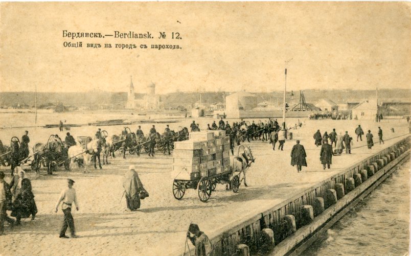 Ukraine: Unused postcard titled ‘Berdiansk – Berdyansk. General view from the Steamship’.