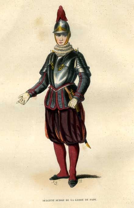 Sergent Suisse de la Garde du Pape – Handcoloured gravure from Moeurs, Usages et Costumes de tous les Peuples du Monde by Auguste Wahlen, 1844. 165 x 255mm.