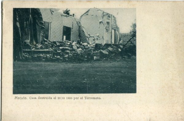 Venezuela: Unused postcard titled ‘Macuto. Casa destruida el 29/10 1900 por el Terremoto‘.