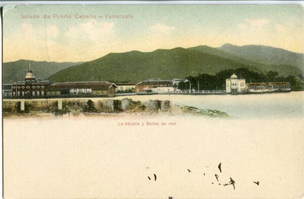 Venezuela: 1906 postcard titled ‘Puerto Cabello. La Aduana y Baños de mar’ franked with 5c. Curacao, Netherlands Antilles to Vienna. ed. Bernardo Rosswaag