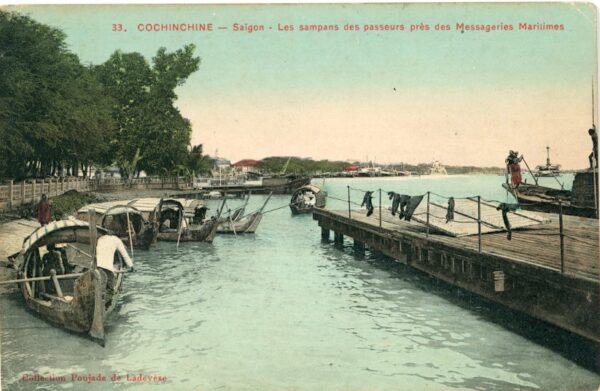 Vietnam – Indochina: 1913 postcard titled ‘Cochinchine – Saigon – Les sampans des passeurs pres des Messageries Maritimes’ to Rochester, England. ed. Poujade de Ladeveze