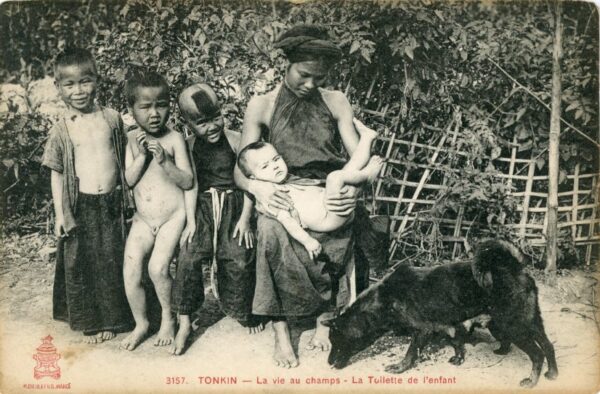 Vietnam – Indochina: 1912 postcard titled ‘Tonkin – La vie au champs – La Toilette de l’enfant’ to Rochester, England. ed. P. Dieule