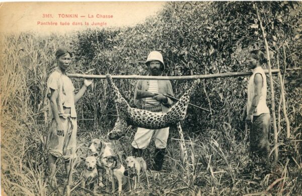 Vietnam – Indochina: 1914 postcard titled ‘Tonkin – La Chasse Panthere tuee dans la jungle’ to Rochester, England. ed. P. Dieulf