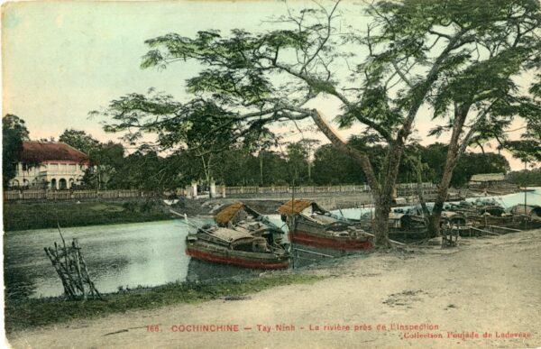 Vietnam – Indochina: 1912 postcard titled ‘Cochinchine. Tay Ninh – La riviere pres de L’inspection’ to Rochester, England. ed. Poujade de Ladeveze