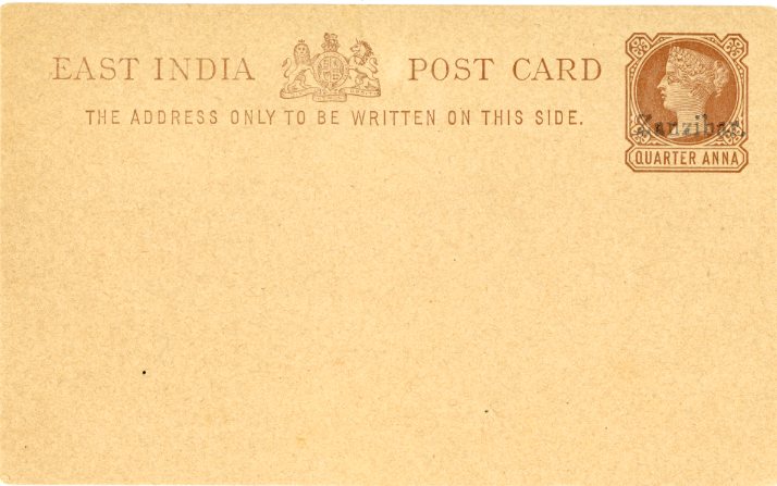 Zanzibar: Unused East India QV 1/4a postal stationery card overprinted Zanzibar.