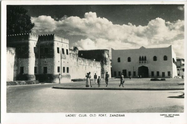 Unused photocard titled ‘Ladies’ Club. Old Fort. Zanzibar’.