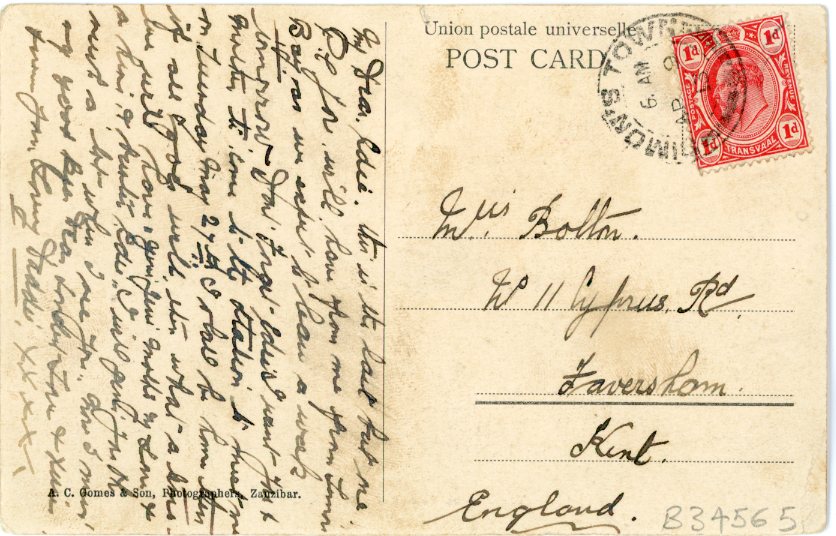 Zanzibar: 1907 postcard titled ‘His Highness’s Palace’ to Austria. ed. Pereira de Lord